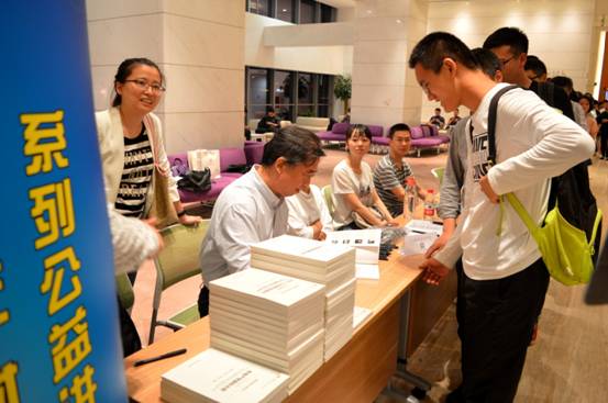 为彰显我校“公益校庆”的特色,讲座开始前,胡怡建教授为到场参加讲座的听众签名赠送100余本由胡怡建教授团队主编的著作。