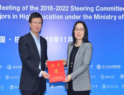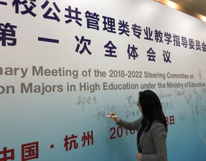 2018年11月28日下午,为深入贯彻落实党的十九大精神和全国教育大会精神,全面贯彻党的教育方针,落实立德树人根本任务,全面提高高校人才培养能力,实现高等教育内涵式发展,充分发挥公共管理类专业教学指导委员会对高等教育教学改革的参谋咨询、指导引领、凝聚队伍、监督推动作用,认真学习教育部关于成立高等学校教学指导委员会的会议精神,研究讨论本届教学指导委员会的主要工作安排和重点事项,教育部公共管理类专业教学指导委员会(2018-2022)第一次全体会议在浙江大学顺利召开。出席本次会议的有浙江大学、北京大学、中国人民大学、清华大学、中央财经大学、上海财经大学、复旦大学、厦门大学等高校51名专家学者参会。研究院副院长、上海财经大学公共经济与管理学院副院长杨翠迎教授出席了本次教育部公共管理类专业教学指导委员会(2018-2022)第一次全体会议,并接受教指委主任、浙江大学党委书记邹晓东教授受聘书。
