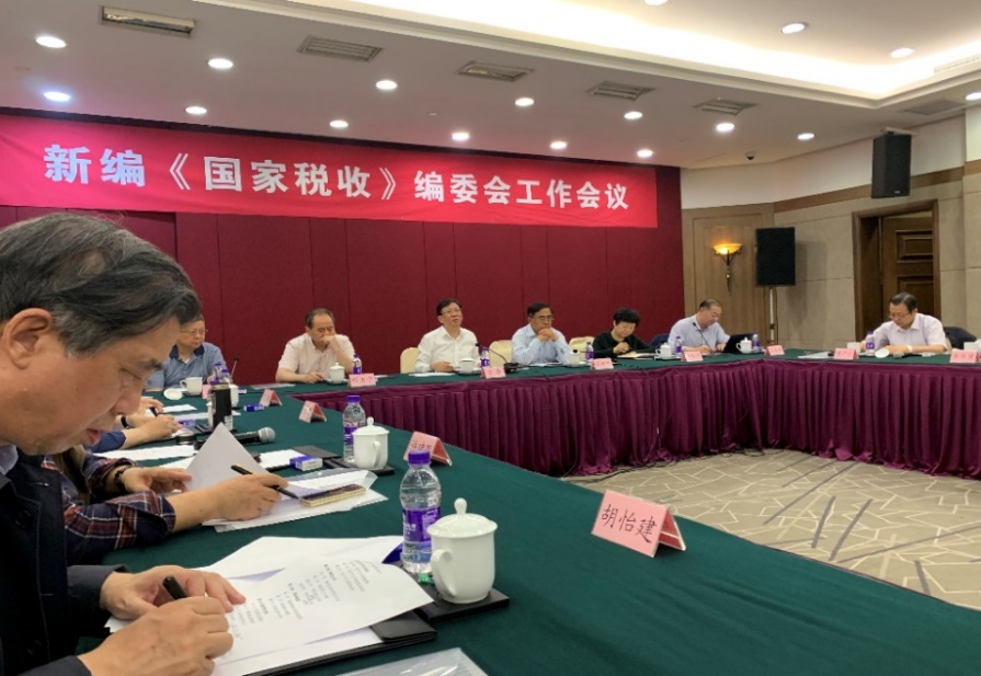 2019 年5 月11 日,研究院院长胡怡建教授与院长助理田志伟博士受中国税务学会的请,前往北京参加了 “国家税收”编委会会议,中国税务学会汪康会长,以及30 余位专家教授出席分工参与编写“国家税收”,胡怡建教授与国家税务总局收入规划核算局刘新利副司长、广东税务局朱江涛副局长共同承担“税收分析”编写,税收分析作为国家税收新增内容,对于加快研究、开展研讨提供了很好条件。