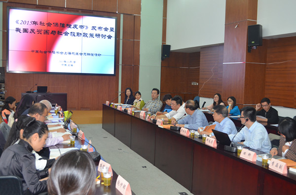 会上,上海财经大学党委书记、中国社会保障学会副会长丛树海教授首先代表中国社会保障学会和上海财经大学致词。研讨会上半场由郑春荣副教授主持,上海财经大学社会保障团队发布了《2015社会保障橙皮书——反贫困模式与管理》。社会保障橙皮书是上海财大社保团队的年度研究成果,又称国际社会保障动态,每年追踪国际社会保障改革与实践的最新动态,并选择以一主题进行深入研究。迄今橙皮书已连续三年成功出版并进行发布。本年度主编李华教授以“反贫困中的政府与社会力量”为题,介绍了橙皮书的主要研究思路、观点与贡献;写作团队中的岳崟助理教授、余央央助理教授、田柳助理教授等分别以“转型期中国的新城市贫困问题”、“我国反贫困进程与老年贫困”、“贫困人口的测度与识别”为题进行演讲,介绍研究成果。