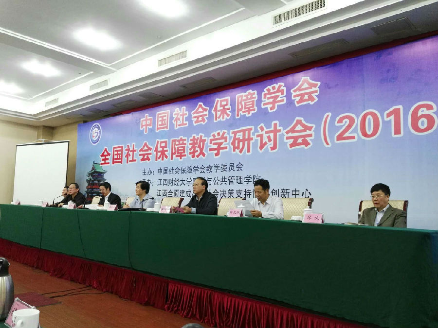 10月14-16日,全国社会保障教学研讨会在江西南昌滨江大会堂隆重举行。研讨会由中国社会保障学会主办,江西财经大学财税与公共管理学院、江西全面建设小康社会决策支持协同创新中心共同承办。江西财经大学副校长蒋金法莅临会议并作了大会致辞,中国社会保障学会会长郑功成、中国社会保障学会副会长丛树海、童星、何文炯、林义、申曙光等教授出席了本次会议。来自全国70多所高校和科研机构的160多位专家学者和教育工作者参加了此次会议。